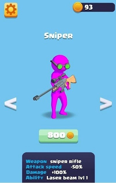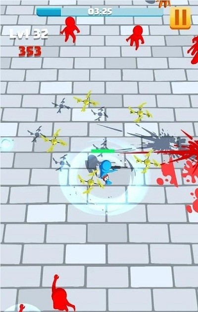 2、只能以默认角色开始游戏,随意滑动屏幕控制小兵灵活的躲避并射杀僵尸,获取道具;