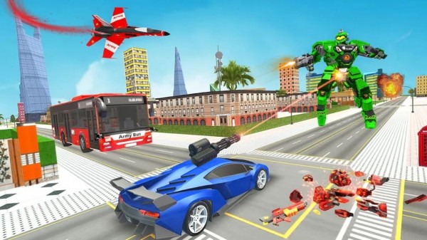 1、这样您就可以在一支军队中获得飞行喷气机器人游戏和汽车机器人游戏的刺激直升机变形游戏。
