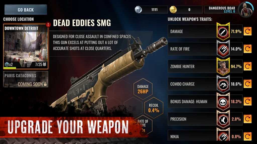 4、僵尸启示录在这里-选择你的枪,升级它并获得经验值。