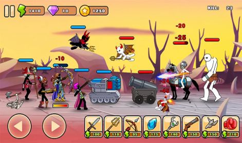 1、每次击败敌人,都会获得不同的奖励,使用金币来召唤您的团队。