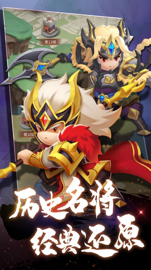1、是一款熱血放置策略类型游戏,搭配不同类型的武将,调整士兵们的作战阵容。