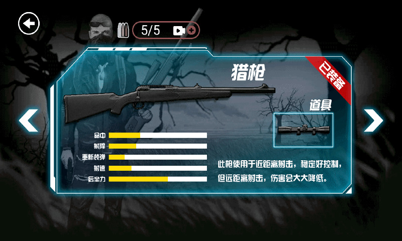 1、brandnew3D制作,场景逼真,多款不同型号的狙击枪可以选择。