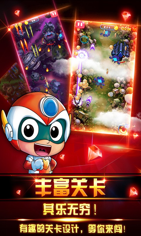 1、横版飞行射击类手游,游戏是动漫开心超人授权打造而成,是一款高度还原动漫中卡通元元素的3D手游,喜欢开心超人的玩家倒是可以试试看