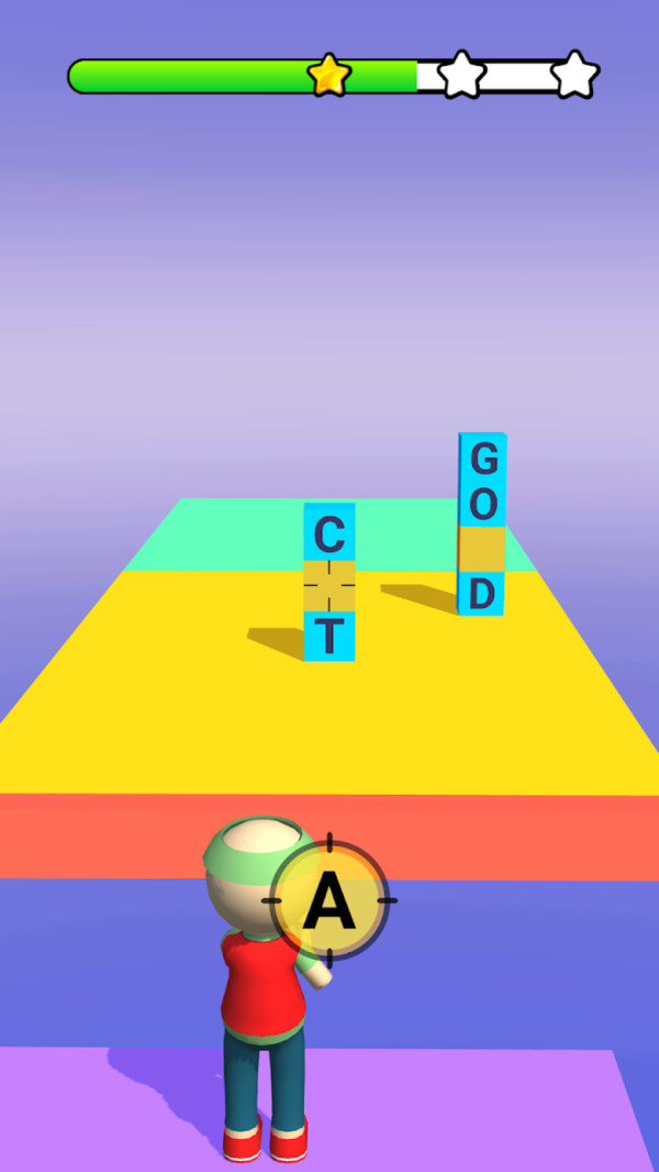 2、要注意这里有很多不同颜色的单词块,不要射击到不属于单词的砖块。