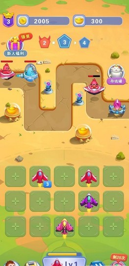 驾驶着你的塔塔开机去消灭敌军,获得的奖励就可以升级飞机哦。