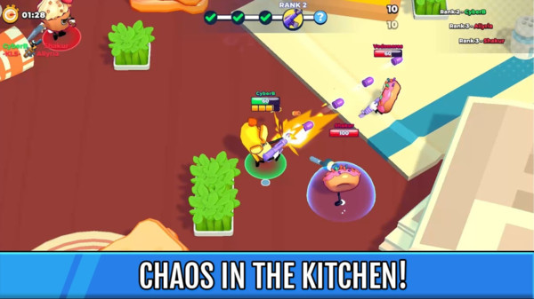 2、有很多的武器让玩家选择,餐桌上食物大战的画面很激烈,各种酷炫技能释放也会让玩家觉得很有意思。
