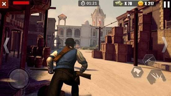 2、扮演一位勇敢的牛仔,在面对敌人的枪林弹雨时该躲还是躲一下,毕竟血量有限;