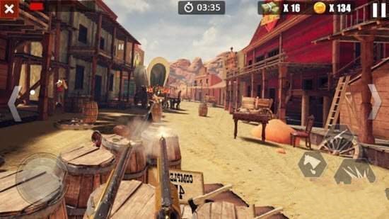 2、江洋大盗四处作恶扰乱居民的和平,你是唯一的英雄枪手,快来帮助居民铲除他们;