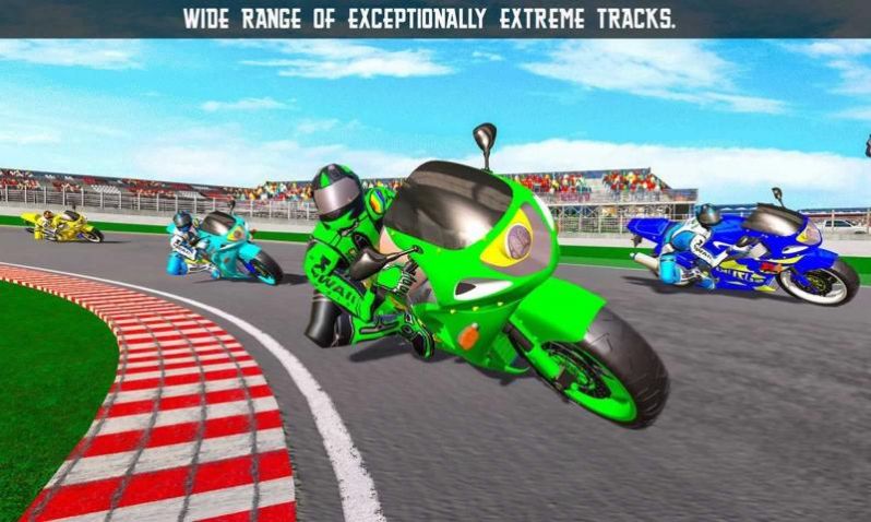 2、想象自己是一个专业的摩托车骑手,同时玩这个真正的竞速赛并赢得胜利;