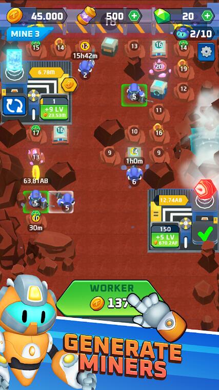 1、升级你的矿工和机器,挖掘更为稀有的矿石资源,赚取更多的金币。