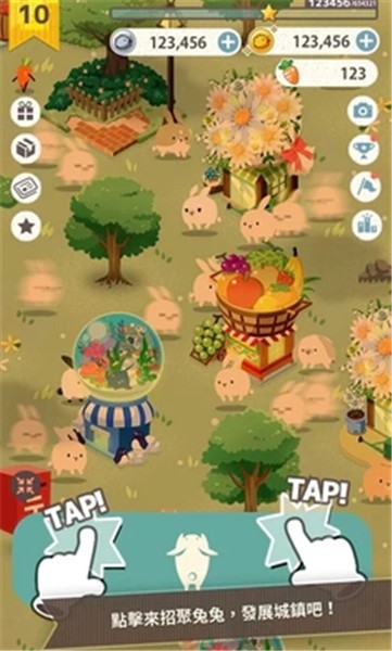 3、建立起建筑来招募到更多的兔子们,和兔子们互动为它们解决各种问题