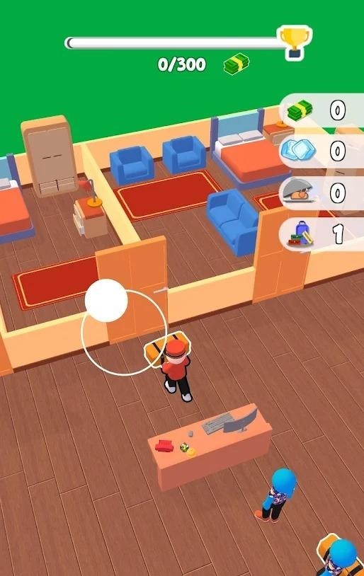 随意滑动屏幕控制自己的角色来帮助客人服务,接过客人的行李箱放在客房;