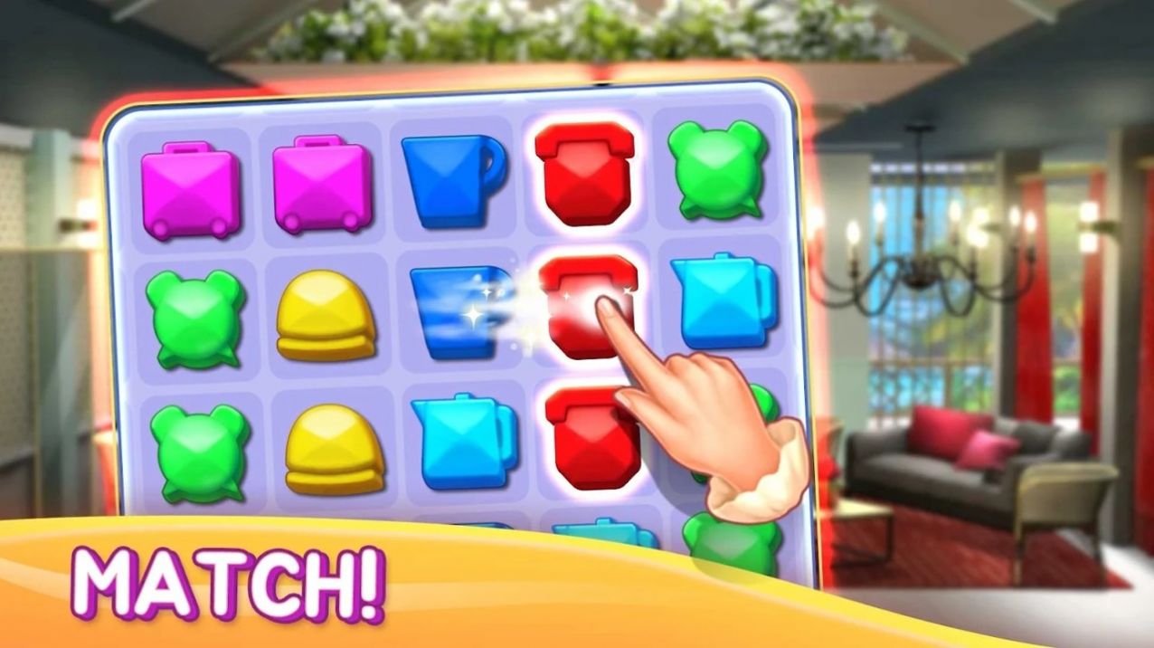 1、ユニーク的3消配对,以酒店为主题,从美味的马卡龙到香薰蜡烛等都需要你避开。