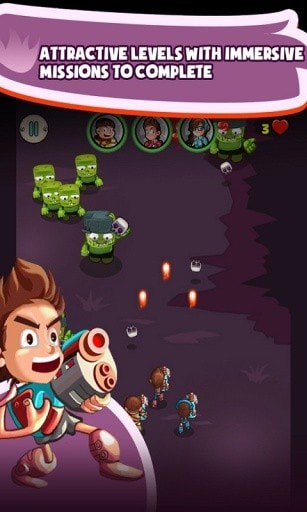 2、僵尸入侵城市,保护他们的家园,人类有武器在手,保护和消灭他们的僵尸。