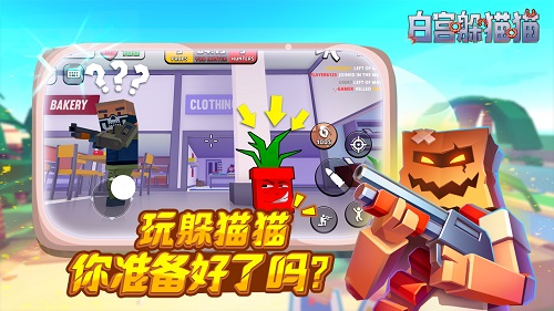 1、一款紧张刺激的躲猫猫像素射击类手游,玩家可以选择两个不同的阵营。