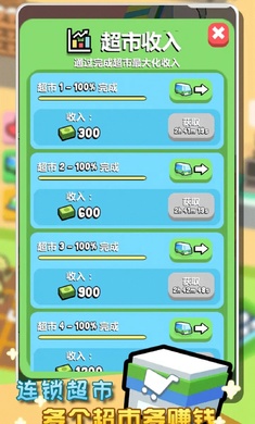 在这个游戏中玩家可以用售卖商品得到的金钱来开启更多不一样的连锁超市,以此获取更多的金钱来发展自己的超市,扩展更多的功能,发展的更加壮大,让自己的超市成为世界最大的连锁超市。