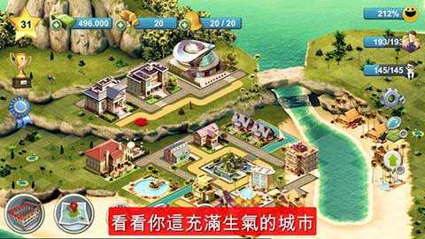 10岛屿城市4:模拟人生大亨中文版需要玩家保证自己的城市拥有足够的居民,才能去提升城市的经济发展,提供充分的工作去赚取金钱,建设不同的建筑物来让自己的城市慢慢的发展,不断的升级来获得成就和金币去收藏和使用。