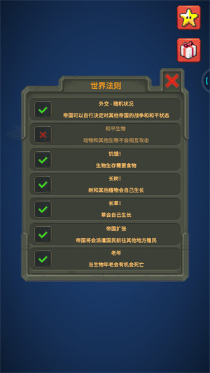 - 调整沙盒世界各种生存要素,来控制生态平衡,避免某个元素大爆发,让你的世界更加的真实;