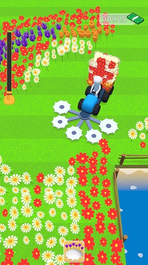 驾驶你的收割机进行转弯和前进来完成花朵的收割,去获得不同的收益进行购买,在这里释放自己的压力和身心去提高自己能力和技术,不断的成长去升级。