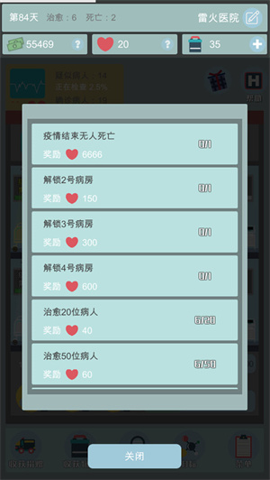- 扩大医院的面积提高病人的接诊率,每天为更多的病人治愈,让更多的人前来看病,从而获得奖励;