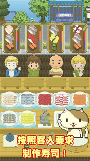 2、开启brandnew的寿司经营之旅,每天早上起来给你你的小店开店,让顾客前来就餐,完成众多生意订单;