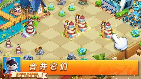 繁荣合并游戏有着模拟经营的玩法设计,多元化的元素加入需要玩家将相同的物品进行合成来获得金币升级自己的建筑建造属于自己的小镇,扩大自己的地盘去不断发展升级,安排各种各样的可爱动物入住来更好的建设。