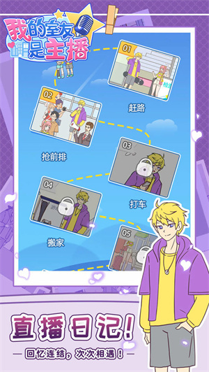- 在每个关卡中与主播室友留下美好的记忆,在这儿过程中提高对方的好感度,逐渐成为男女朋友;