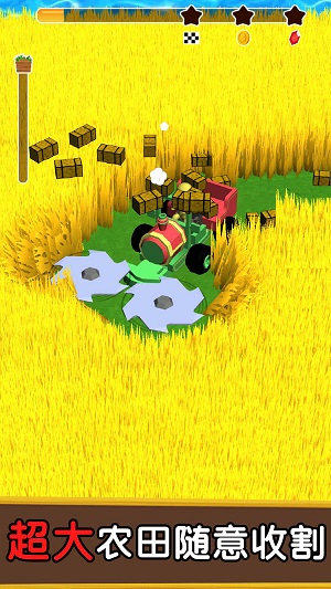 不断的收割解锁新的区域和收集配件来帮助自己提高效率建设更好的农场,完成任务获得更高的评价,操作难度不高需要玩家不断驾驶收割。