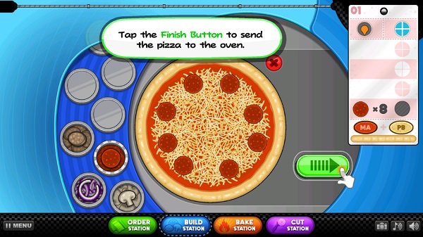 老爹披萨店需要玩家的思维逻辑能力足够强大才不会手忙脚乱,观察每个区域的物品摆放,完成每个顾客的食物需求来进行披萨的制作,获得更多的收入,不断升级你的店铺解锁更多的菜谱,切割成不同的披萨大小,获得小费。