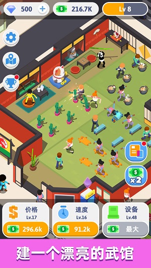 2、升级你的武馆设备,每个客人前来锻炼都能收取收益;