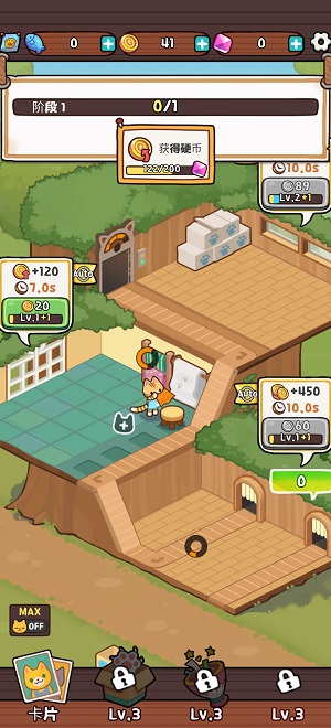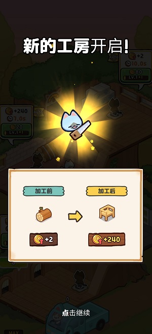 3、游戏中还能解锁各种各样的猫咪,不断的经营加工进行售卖,赚取收益。