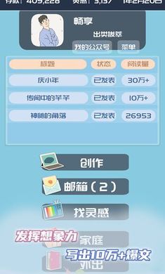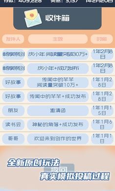 -创作、投稿、等待回复,真实模拟写手的投稿全过程,购买宠物收集灵感;