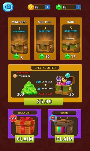 3、挖到更多的宝石从而去赚取更多的钻石,整个游戏过程十分的放松玩法;