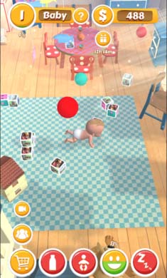 2、宝宝的房间里会有非常多的玩具,玩家们可以在游戏中和宝宝多多进行互动;
