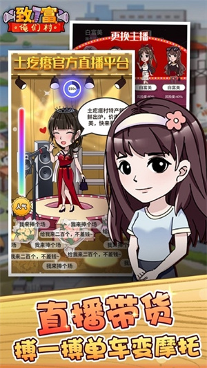 致富俺们村是一款趣味的模拟经营类游戏,在游戏中化身成为村长,大力举办各种店铺、工厂等,招商引资,直播带货,带领你村庄的村民一起走上致富道路,成功享受到众多优惠,让村子中的每户村民走向小康生活。