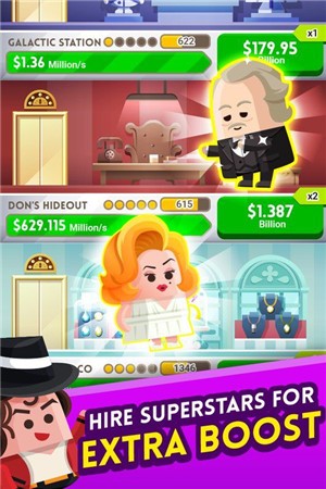-玩家可以雇佣自己信任得过的人员来帮助自己打理自己的商业帝国,然后自己就可以闲散的生活。
