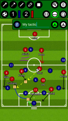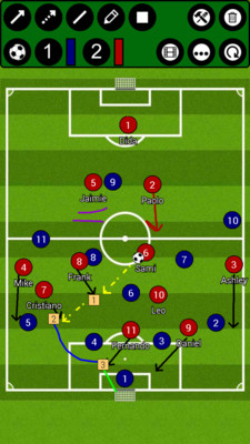 这是一款非常精彩的足球战术板模拟游戏,在游戏中可以轻松的模拟出足球战术,还可以进行最细致的战术跑位安排,合理规划游戏战术,让我们的球队可以无往不利,轻松取得对战的胜利。