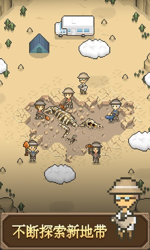 恐龙寻宝游戏是一款像素类型的模拟游戏,在游戏中你瓦加将体验到挖掘化石的游戏过程,这个过程就像是解谜一样的游戏过程,玩家是不知道会挖掘出什么东西的,玩家可以拭目以待的体验游戏的惊喜,收集更多的化石,开启博物馆。