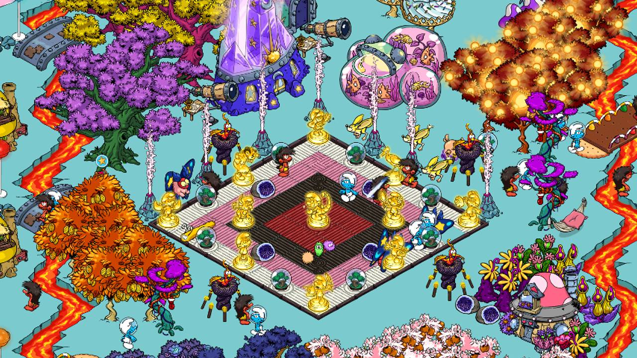 3.其余的蓝精灵家庭一起,带领您进行おもしろい家庭危険を冒す,为蓝精灵建立一个新的森林村庄;