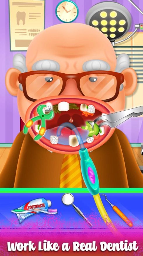 我奶奶的牙医游戏,这是一款非常趣味的模拟牙医的游戏哦,小伙伴们成为牙医在这里治疗病人,为老奶奶、老爷爷们的诊断牙齿问题,帮助他们进行治疗,游戏的玩法比较的多,治疗牙齿的玩法内容丰富有趣,感兴趣的小伙伴们快来我奶奶的牙医游戏玩玩吧~