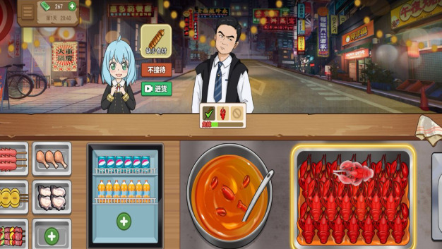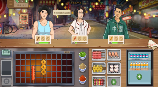 3.把食材分发给相应的客人满足需求,经营夜市摊位,建立我的大排档。