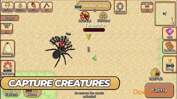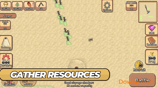 2、通过自己的努力,扩展您的蚂蚁帝国,收集食物和资源,种植牛群并与许多敌人作战