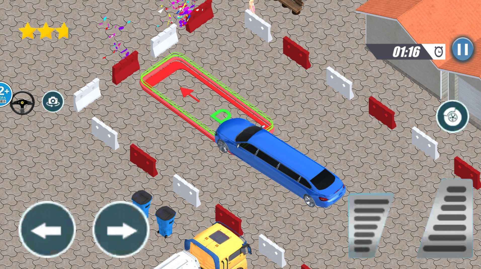 1、面对不同的停车场的情况就需要玩家correct的驾驶技巧了,不要撞到任何东西去停好车