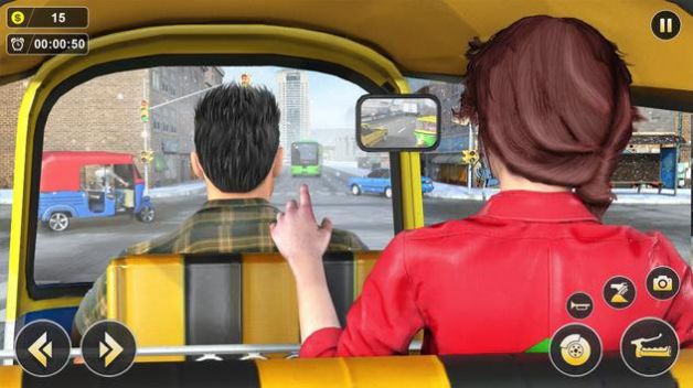 这是一个很特别的模拟驾驶的社会经营玩法的游戏,因为在游戏中里面你驾驶的汽车是一个非常古老的黄包车样子,与周围的现代车是格格不入的,不过却是有着另外一番乐趣所在,在路边会有着一些乘客想要坐车的你就可以上前去接客,价格上便宜点就可以有很多的