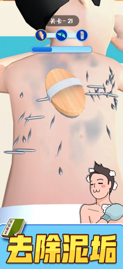 1、各种各样的搓澡工具,可以灵活使用,free闯关,很精彩;