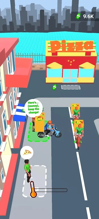 1、简单的游戏玩法和操作,大家能随时进入游戏中,完成各种配送披萨任务