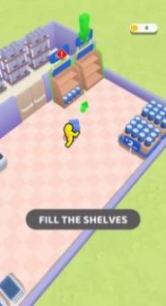 3 、货架上的商品很快就会被清空。这时候玩家要及时补货,打扫自己超市的环境,扩大自己超市的规模,获得越来越高的利润!