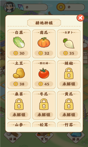 3、玩家需要开垦周边的荒地,才能种植更多的蔬菜水果哦;