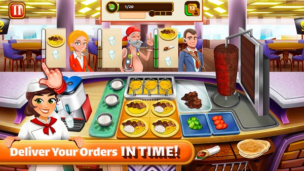 2、游戏当中有很多的客人,他们会点不一样的餐,我们要为客人进行服务,准确的制作出客人需要的食物。