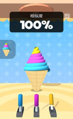 1、游戏简约的单色背景,突出了冰激凌创作的过程,和最后冰淇淋的成品样子;
